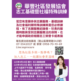 115年度高雄市 社會福利類志工特殊教育訓練-第一志願服務協會(日期:5/3、11/8)