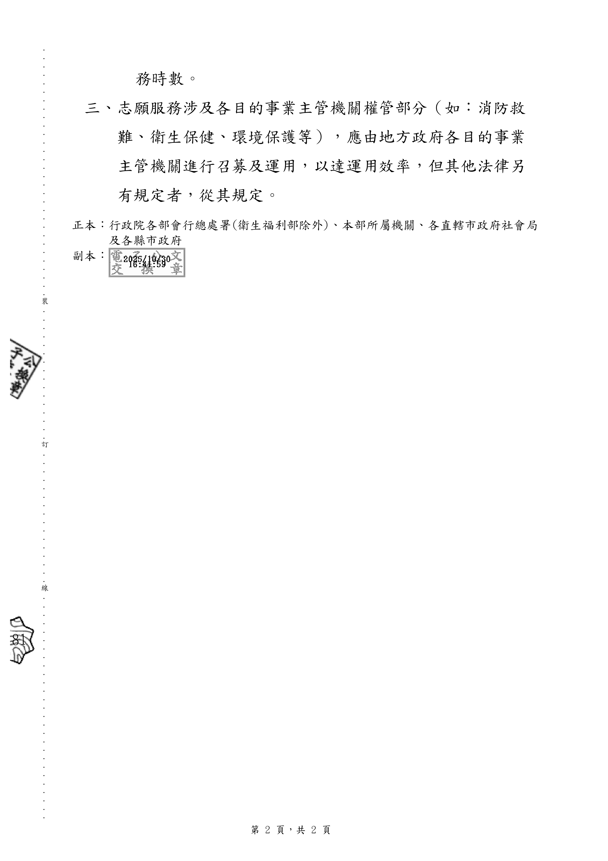 本局各單位請依上述規定運用志工,檢附來文供參~