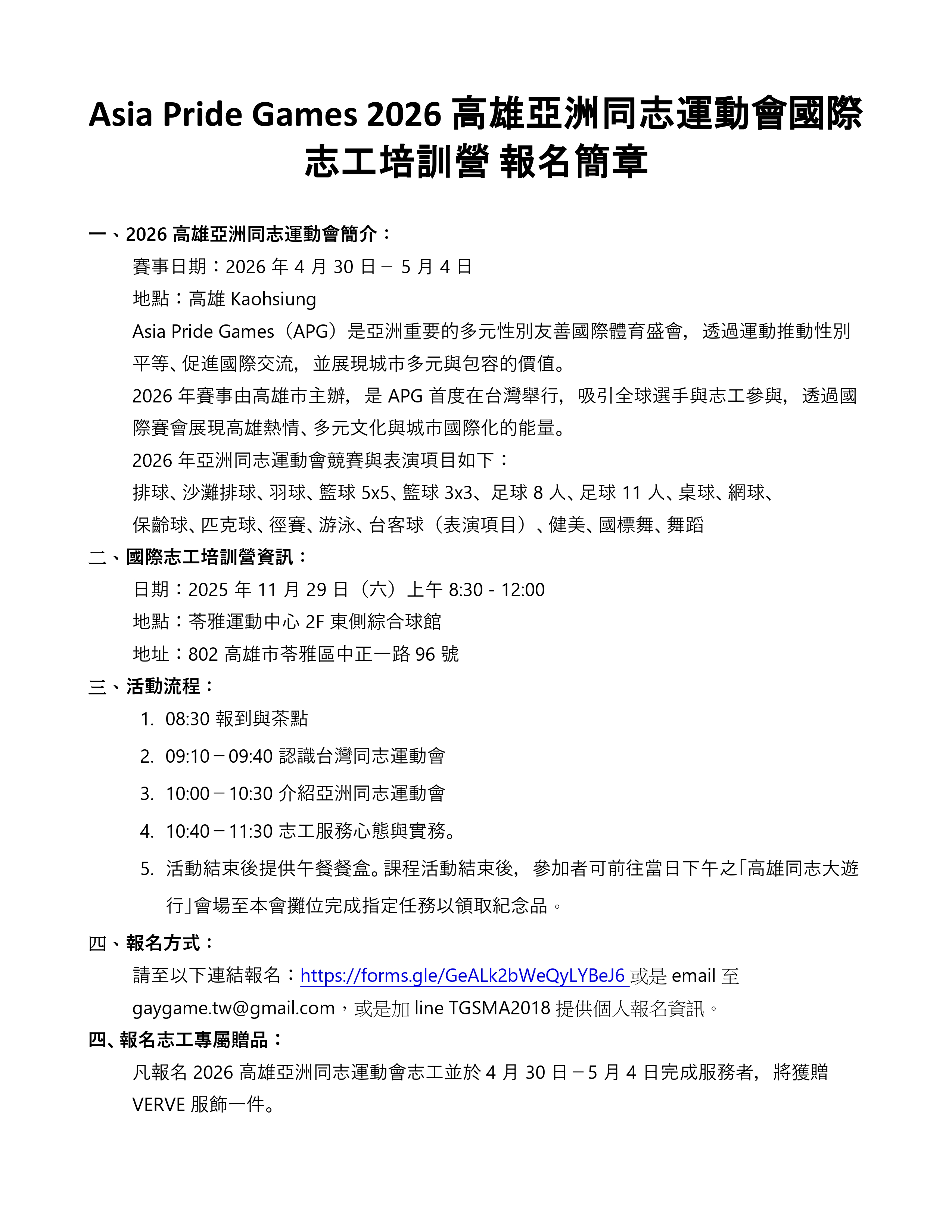 「2026高雄亞洲同志運動會」,國際志工培訓營招募