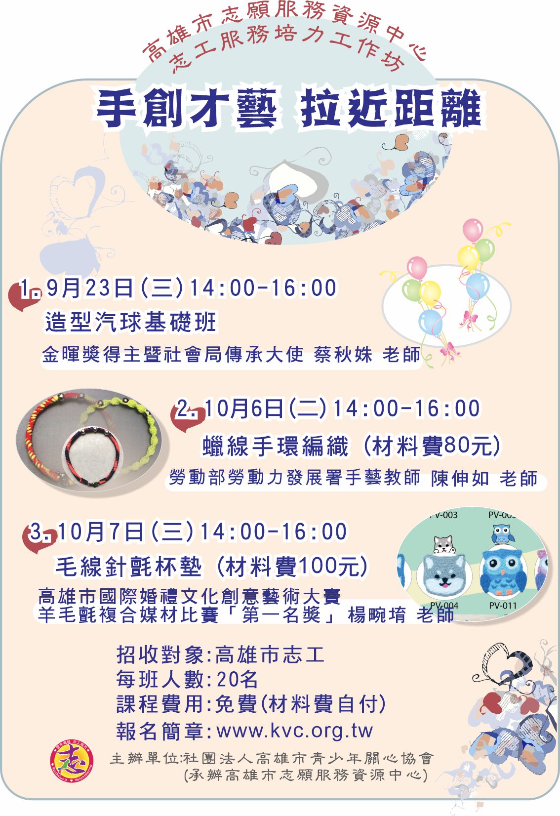 上課地點:高雄市志願服務資源中心1樓(苓雅區凱旋二路5號)