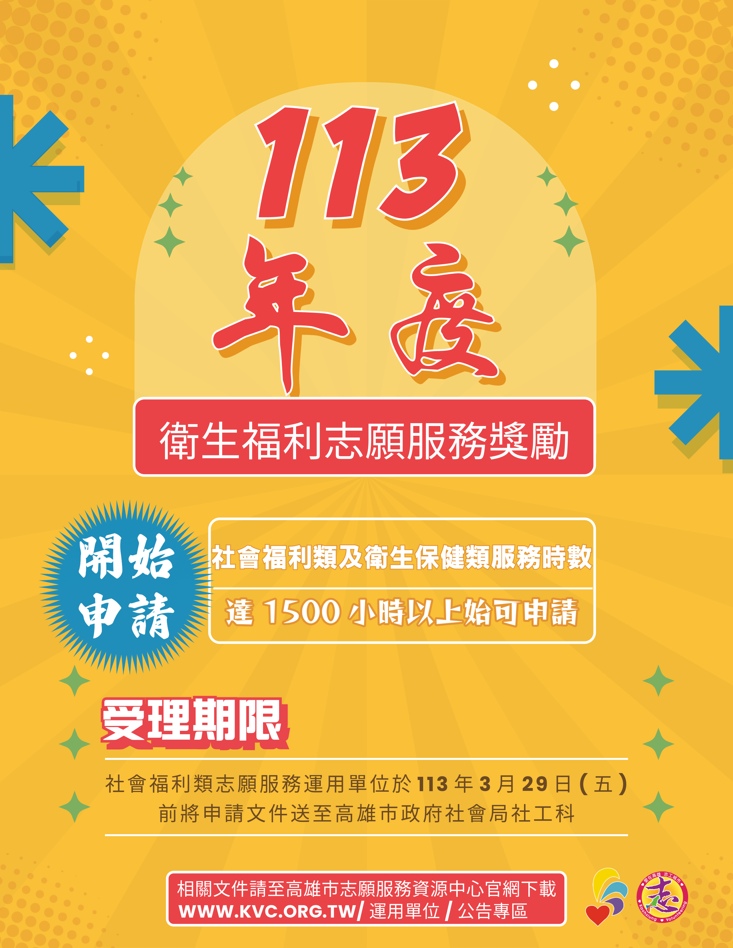 113年度衛生福利部志願服務獎勵開始申請(1500小時以上)