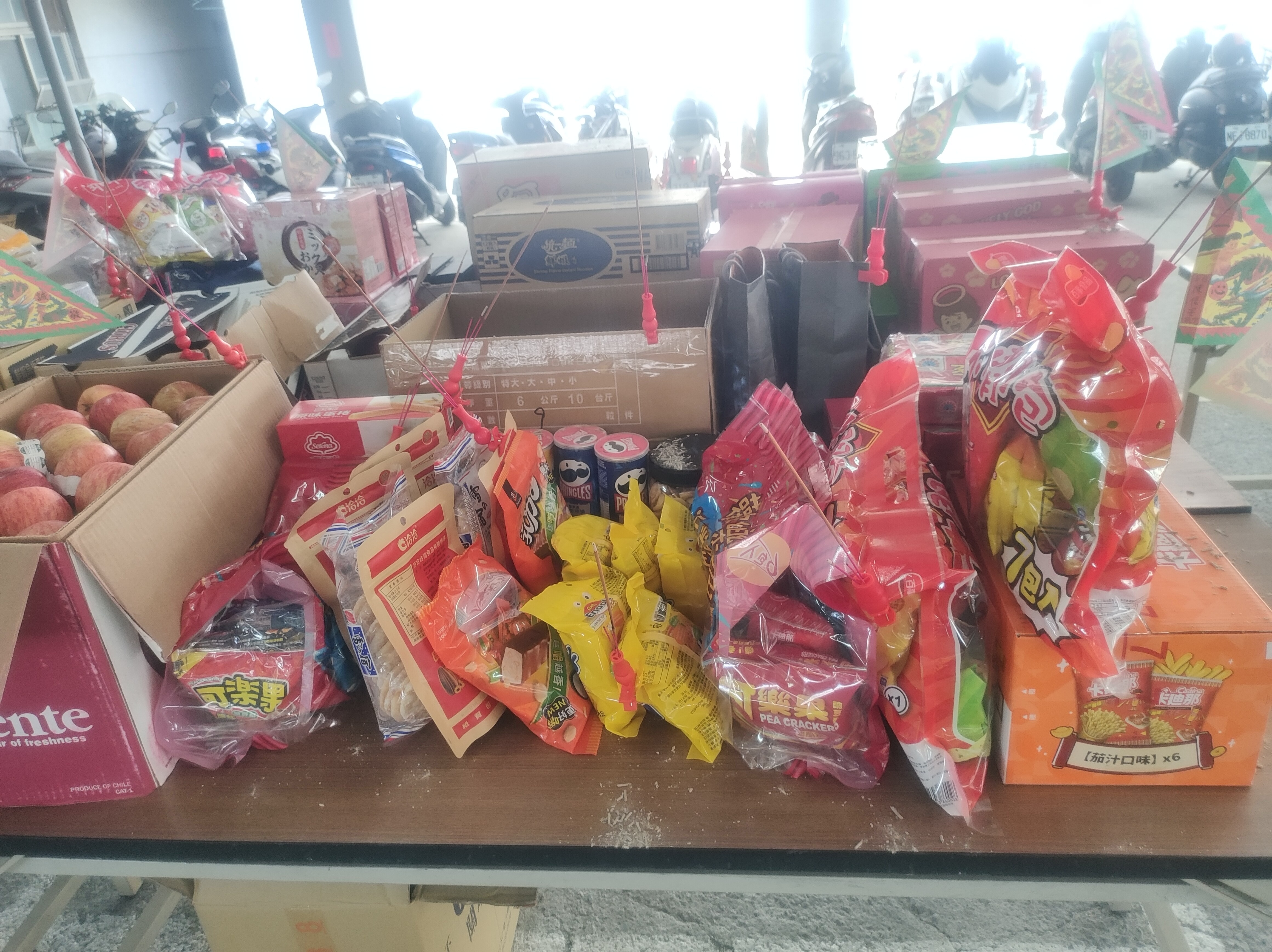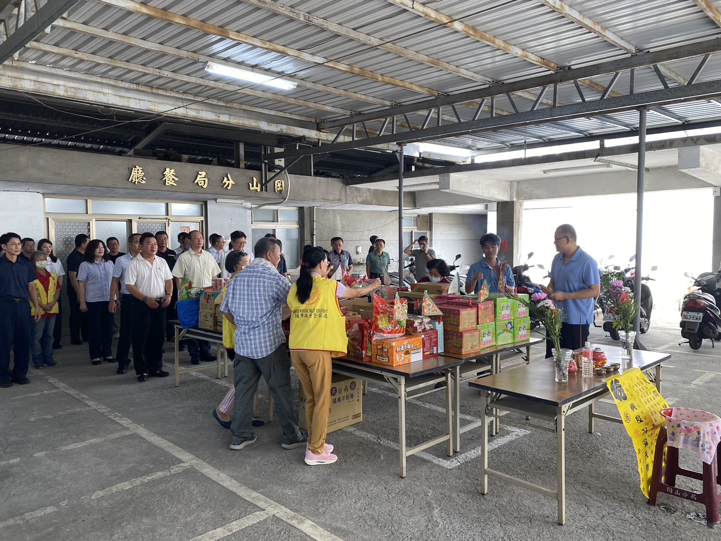 供品除分局購置,亦由各科室依需求自行購置,志工中隊結合業務組亦出資參與,並請志工媽媽媽們全程幫忙,同時也配合政府環保政策,不燒紙錢的環保祭祀方式。普渡祭祀雖只是一種形式,但希望所有公務同仁,皆能真正體會到在執行公務時恪守職守、決不做違法、不道德之事,這才是今日中元節祭拜的重點。