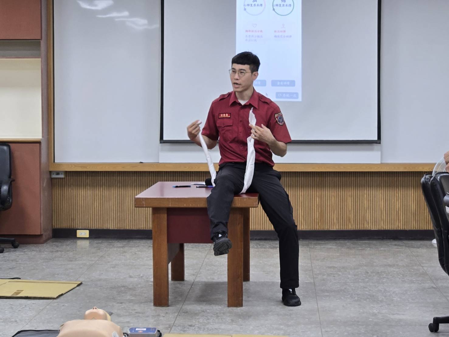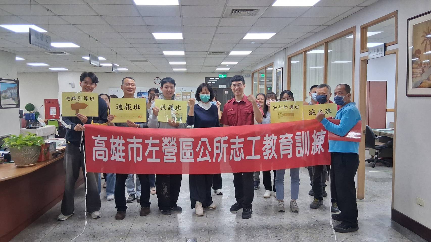 左營區公所於114年12月19日辦理114年度下半年自衛消防編組演練,邀請高雄市政府消防局左營分隊謝佳昇教官蒞臨指導,講授傷害應變知識及基本救護技能,並透過自衛消防編組分組實際演練,提升應變救災能力,讓參與課程的同仁與志工獲益良多。