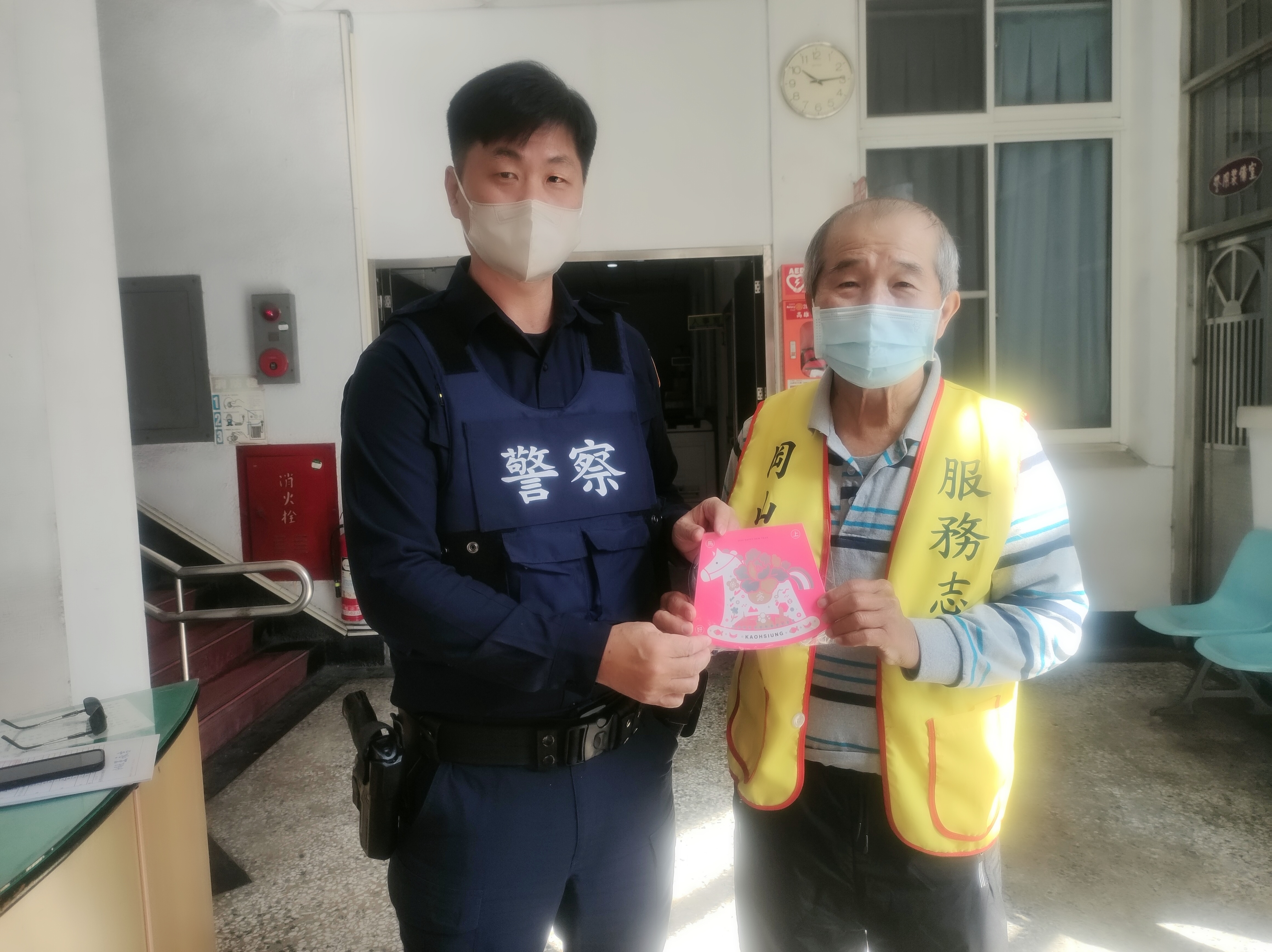 岡山警分局業務組收到由警察局統一轉發的2026年高雄市馬年新春志工賀卡後,即由承辦人於志工值班時段逐一轉發,並恭賀渠等「新年快樂」。