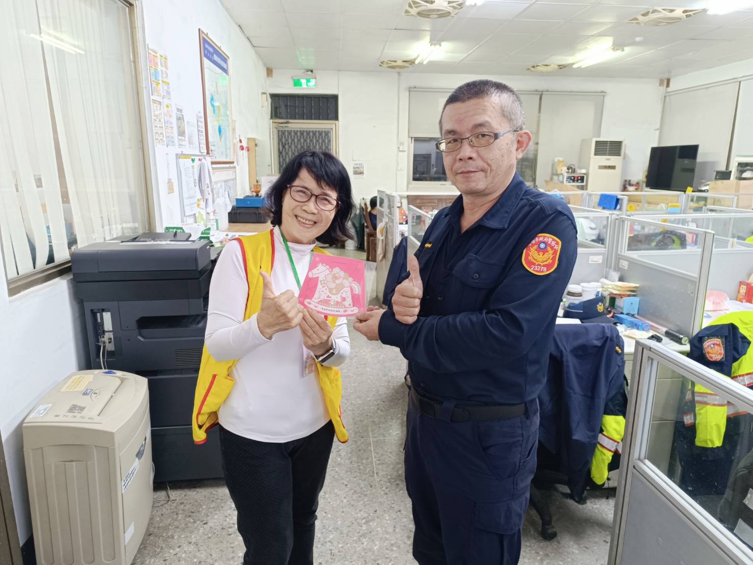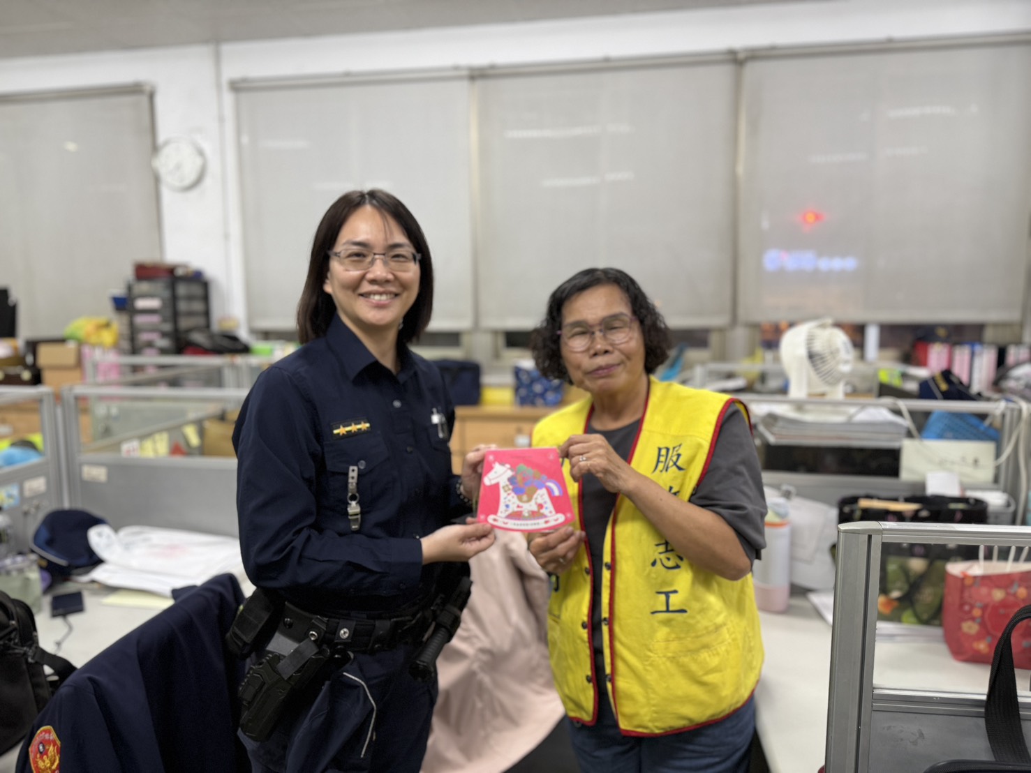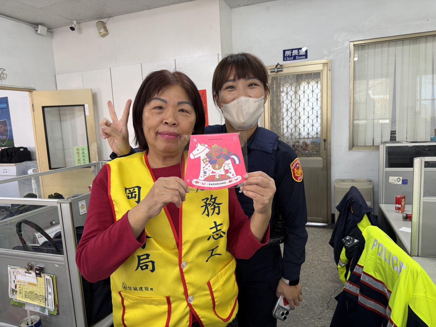 橋頭分駐所收到由分局統一轉發的2026年高雄市馬年新春志工賀卡後,即由承辦人於志工值班時段逐一轉發,並恭賀渠等「新年快樂」。