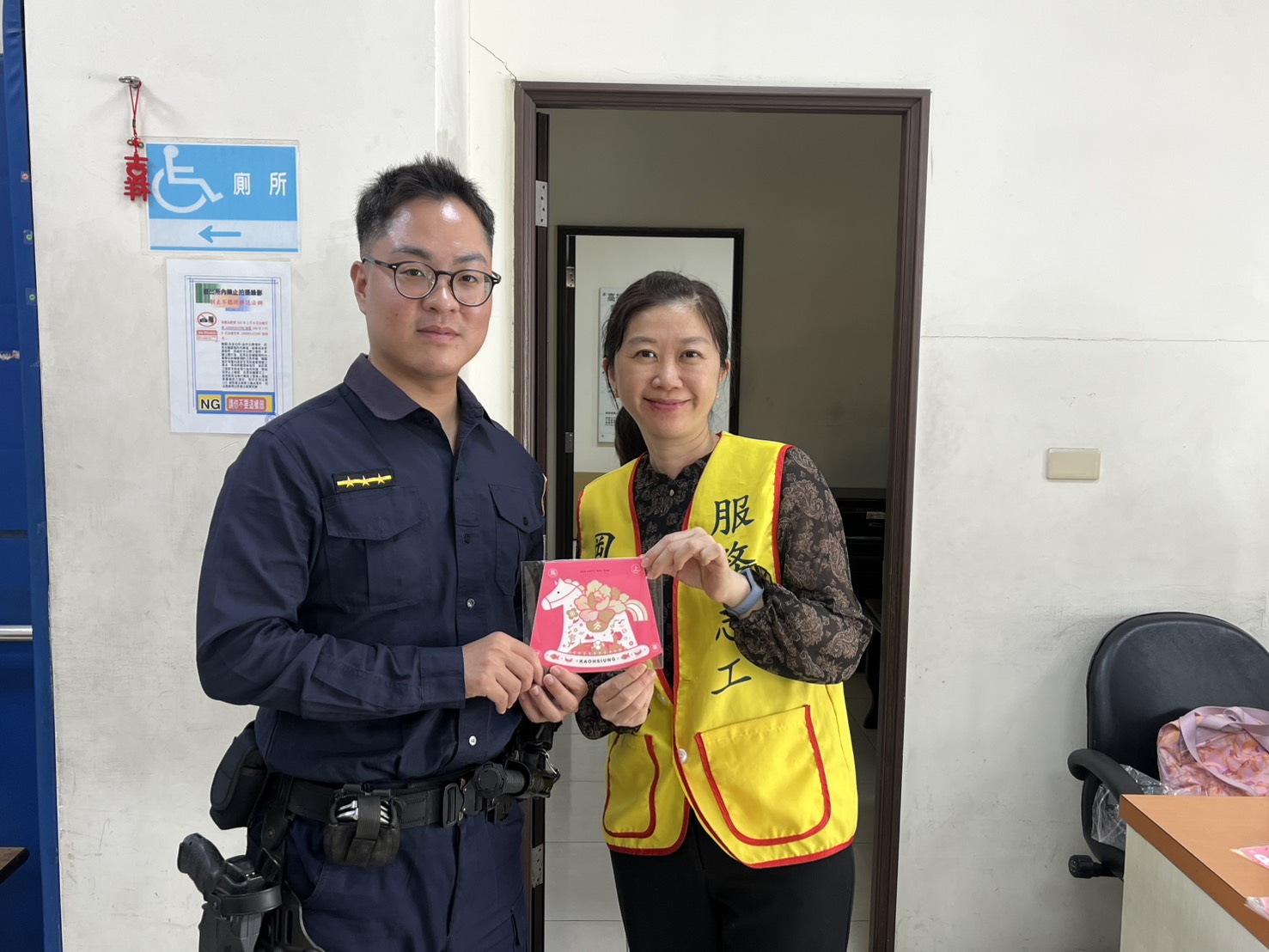 壽天派出所收到由分局統一轉發的2026年高雄市馬年新春志工賀卡後,即由承辦人於志工值班時段逐一轉發,並恭賀渠等「新年快樂」。