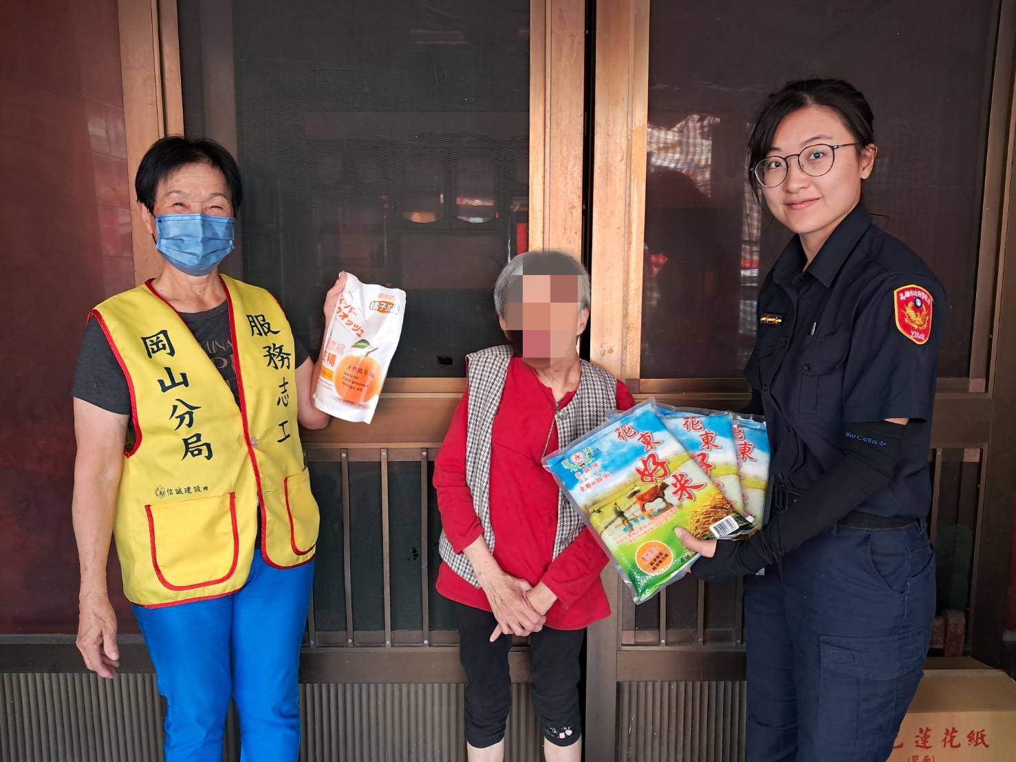 岡山警分局志工結合「蔣水南」里長、「全家超商-許瑞娟」關懷弱提供物資