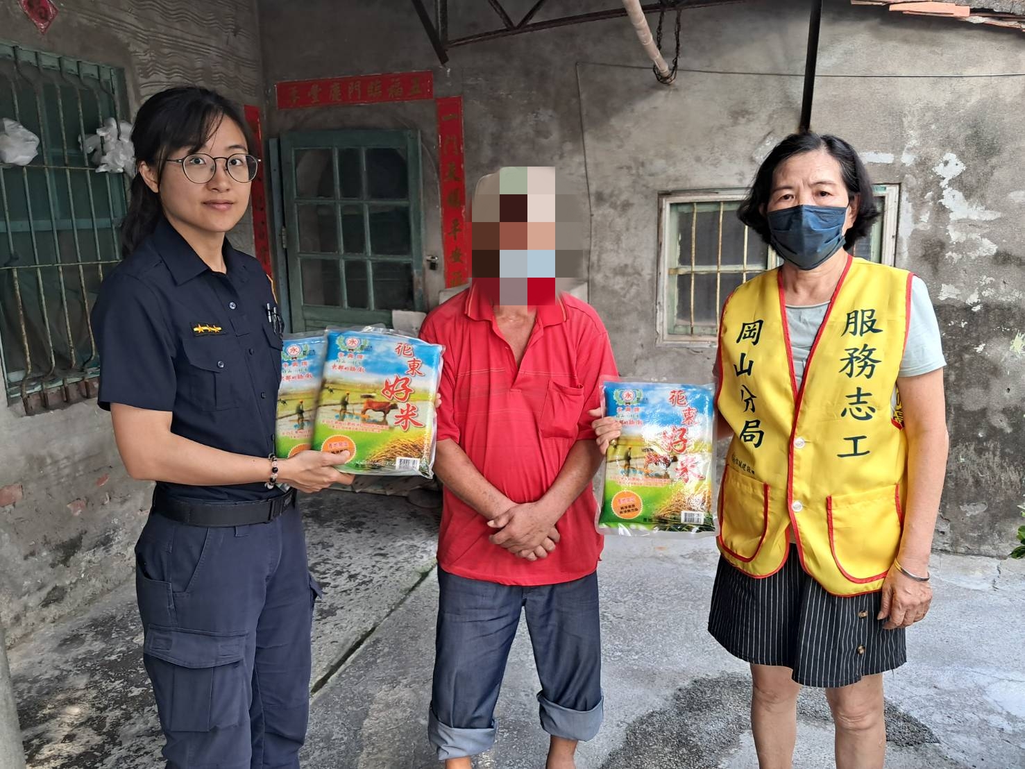 岡山警分局志工結合「蔣水南」里長關懷弱提供 白米等民生物資