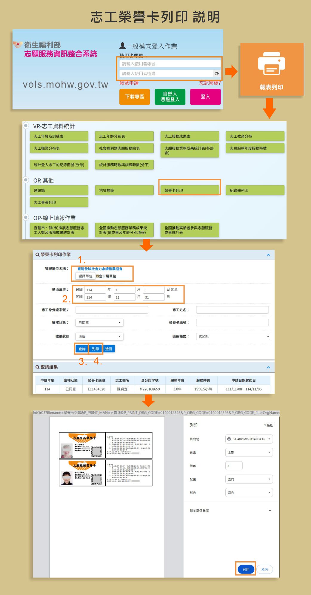※ 已審核完,若單位要自行列印,可參考「榮譽卡列印」說明(簡易版)